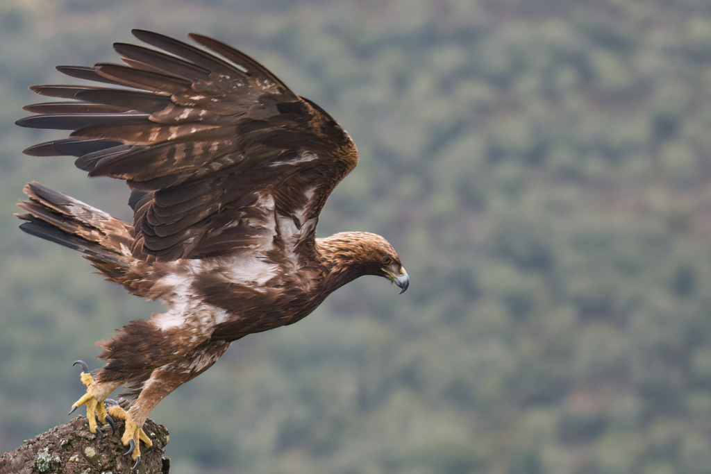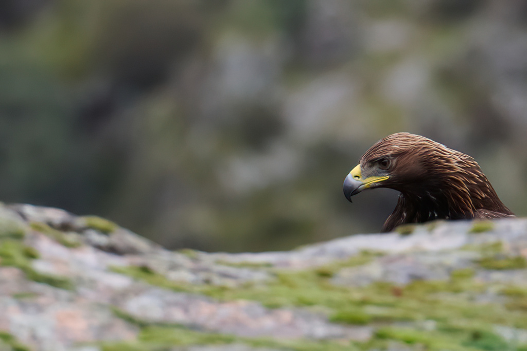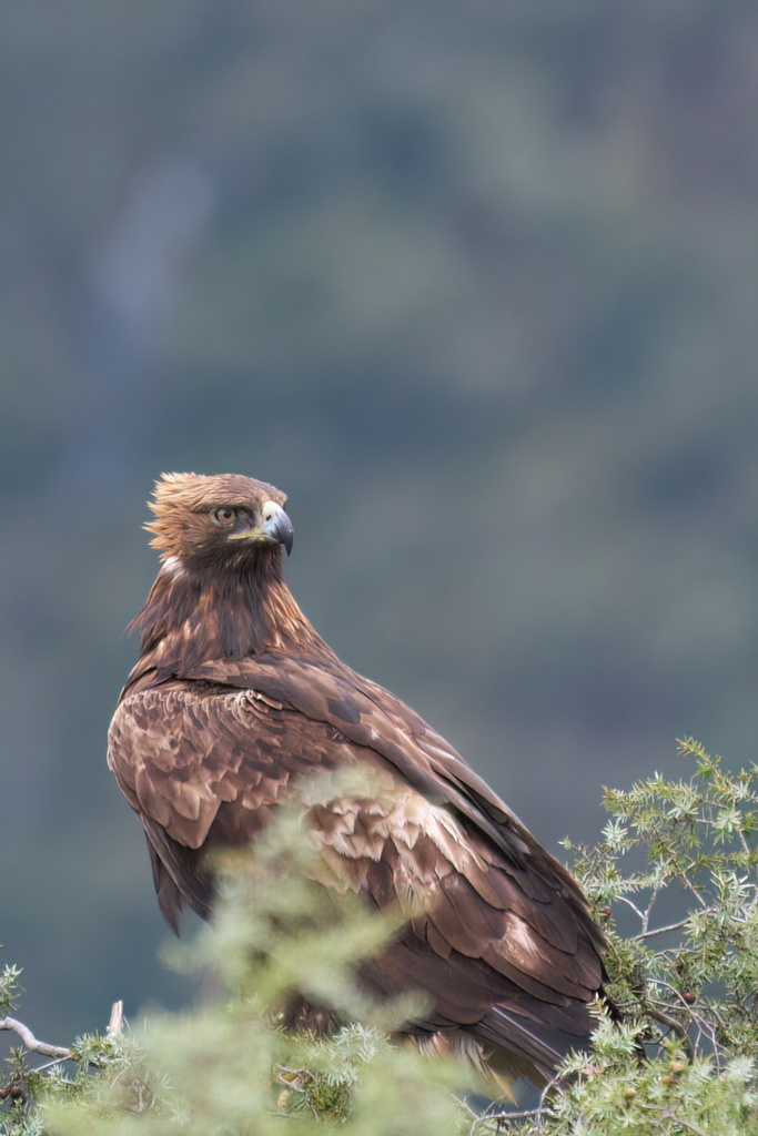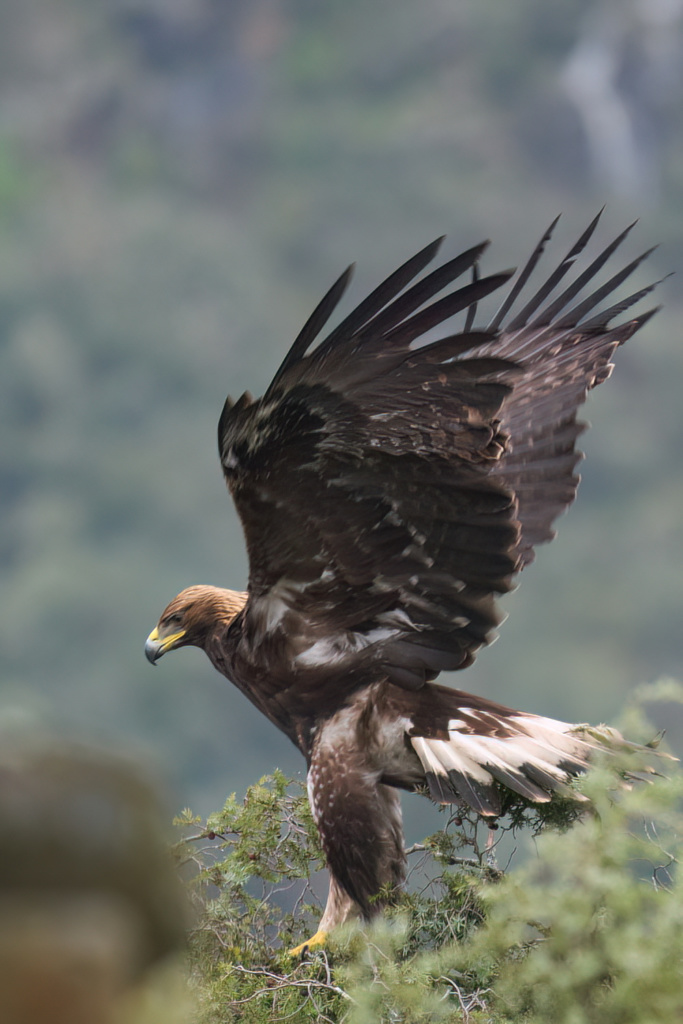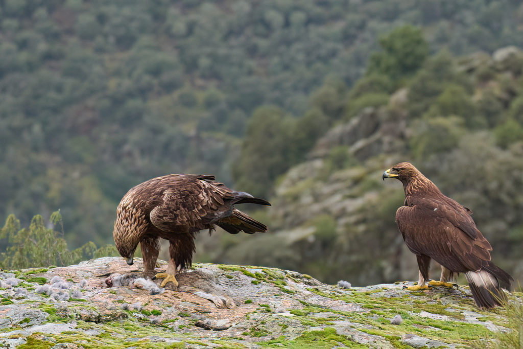 Notre dernier affût. Carlos, photographe professionnel et profond connaisseur de la région, nous a expliqué qu’une femelle d’aigle royal, âgée de 20 à 25 ans, vient de perdre son compagnon, rapidement remplacé par un jeunot de 7 ans. Une jeune fille vit encore avec le couple.
