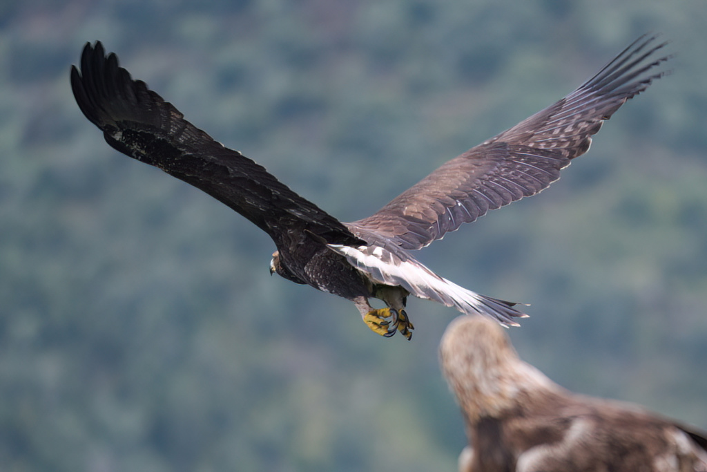 Dans le monde des aigles royaux, il doit exister un sévère protocole. Pas question de se mettre à table, sans y avoir été invité. Invitation que n’arrive pas. Autant repartir.