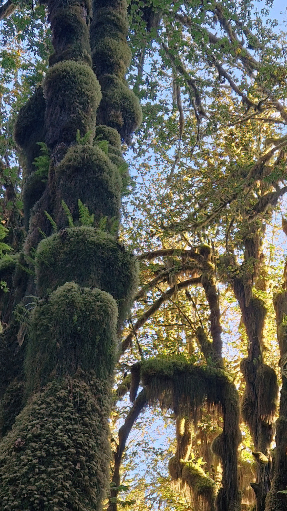 Parcourons les sentiers de Quinault River et de Hoh Rain Forest, un monde de spectres de toutes les nuances de vert habillés. Mousses, fougères, grands arbres et étangs se liguent pour avaler nos pas.