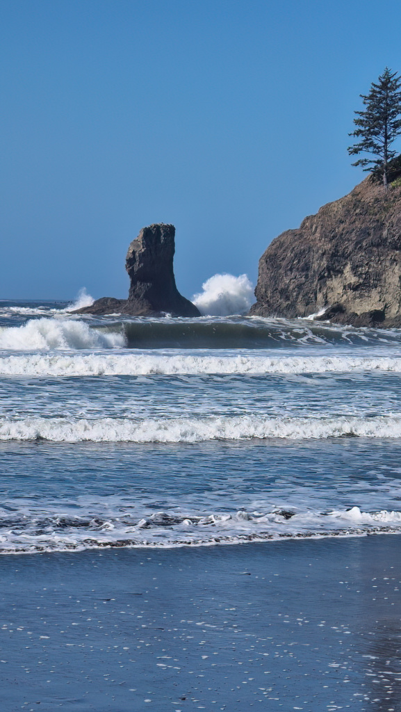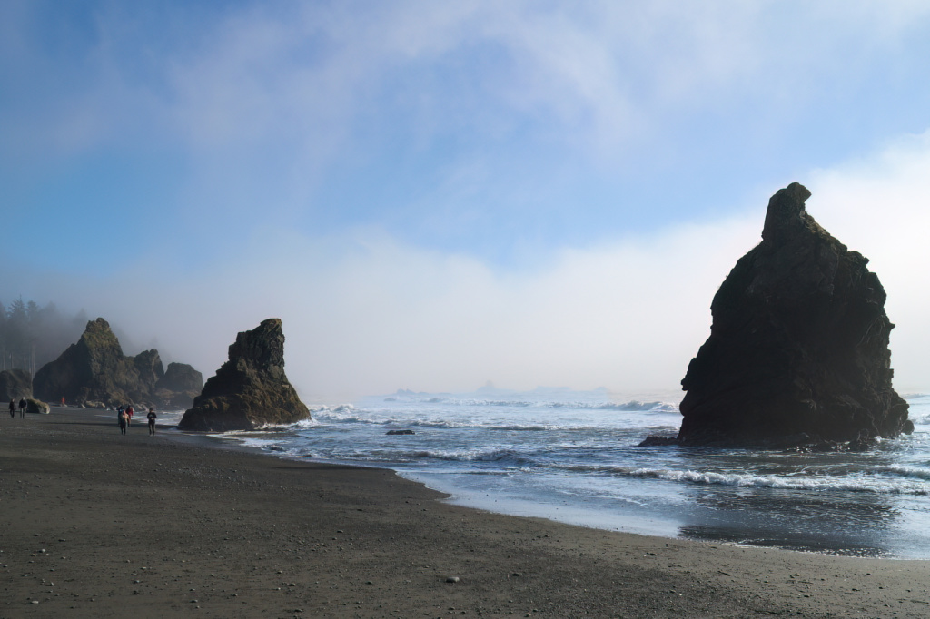 Arpentons les plages, jouons avec les vagues et la marée. Parfois difficiles à atteindre, d’autres fois à portée de main, elles sont toutes différentes. Ruby Beach et son coucher du soleil, Second Beach et ses formations rocheuses, Rialto Beach, parsemée de bois mort blanchi par l’eau salée. Des moments de contemplation que chacun de nous vit à sa manière.