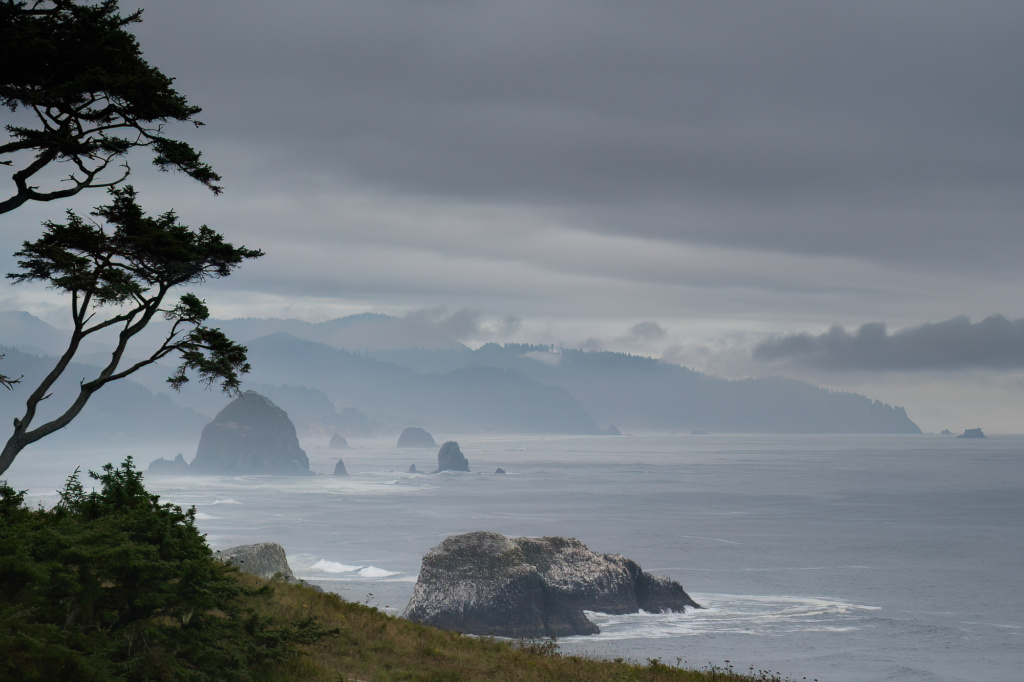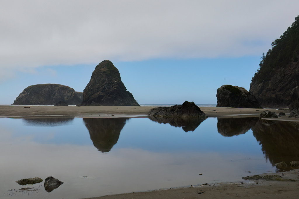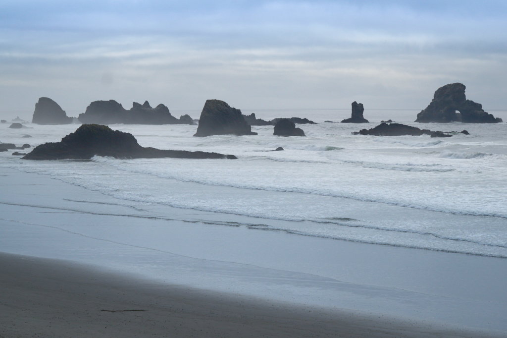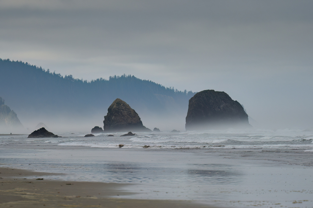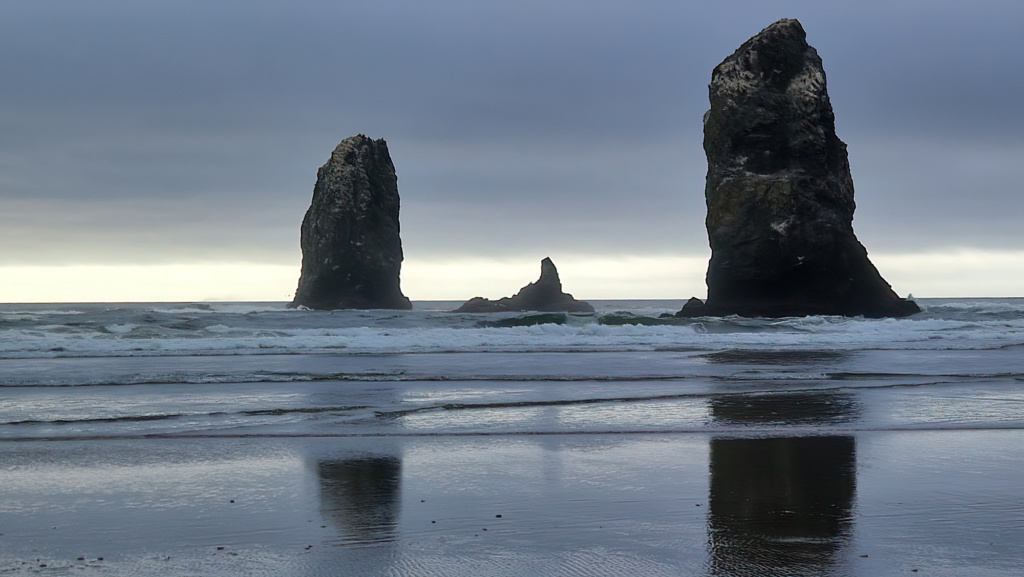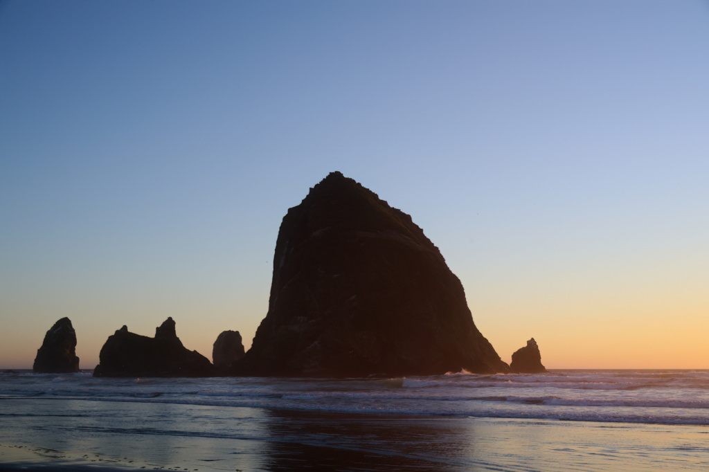 La véritable vedette des côtes de l’Oregon est Haystack Rock, immense monolithe haut de 72 mètres. Que ce soit au coucher de soleil, dans la brume matinale ou sous un ciel menaçant l’averse, lui et ses sentinelles forcent l’admiration.