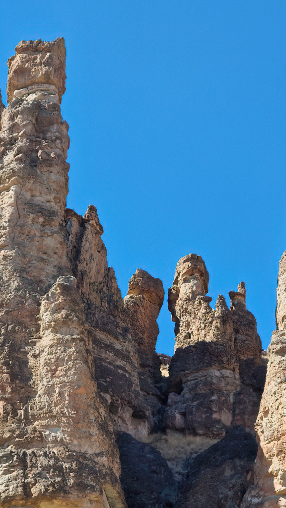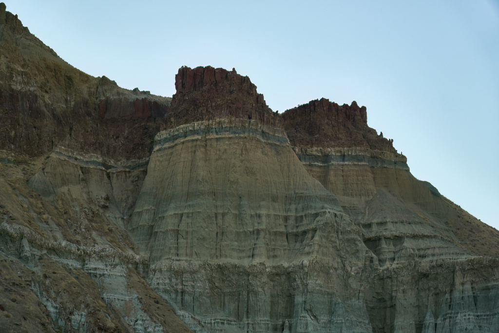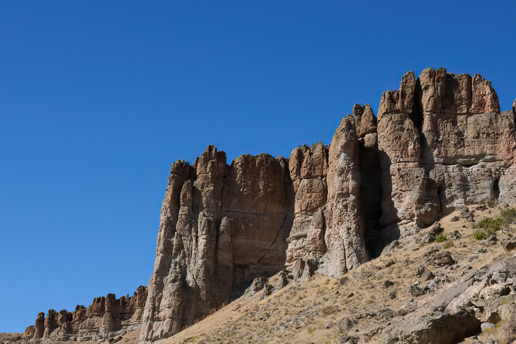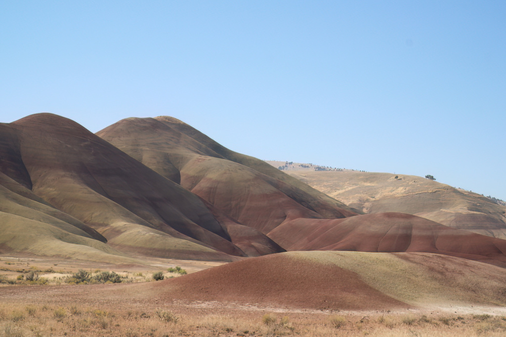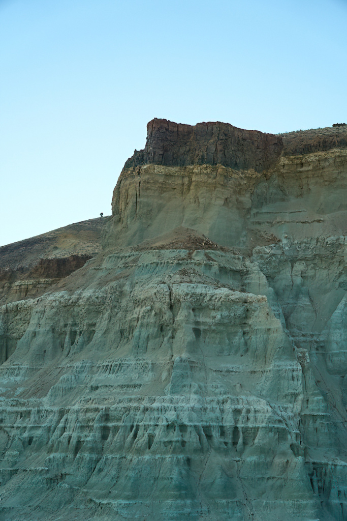Une courte déception vite oubliée. L’ intérieures de l’Oregon nous offre des paysages variant sans cesse qui ne manquent pas de nous rappeler d’autres voyages : les terres d’Afrique avec leurs collines parsemées de broussailles et de buissons ou encore Moab avec leur falaises et ses pitons rocheux. Nous roulons vers Spray, au coeur de John Day Fossil Beds National Monument, l’un des plus riches gisements de fossiles, de plantes et de mammifères au monde.