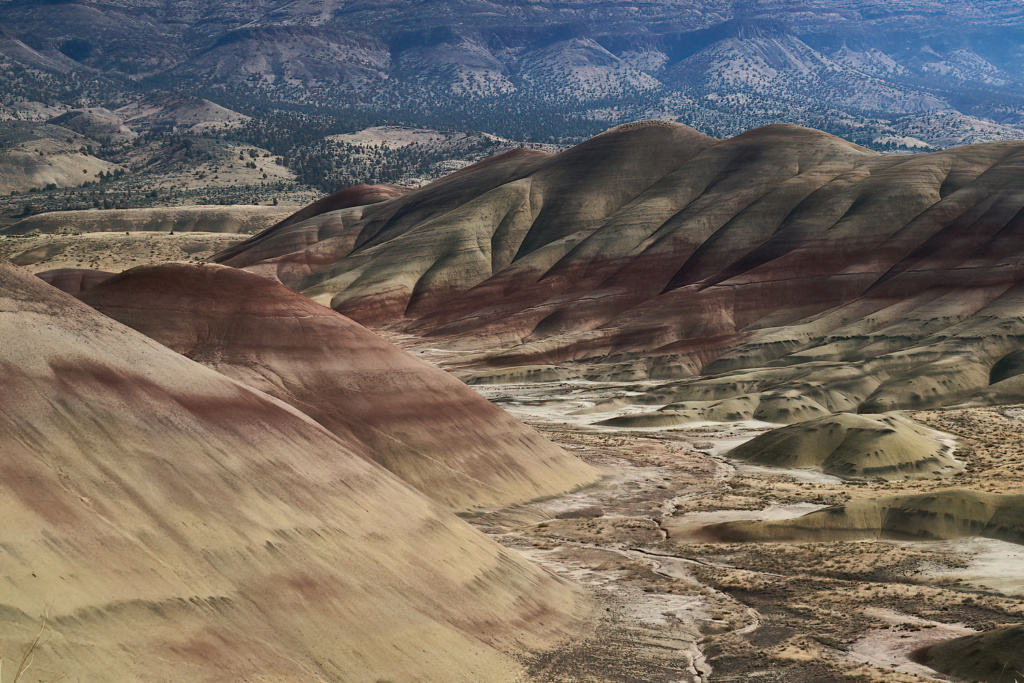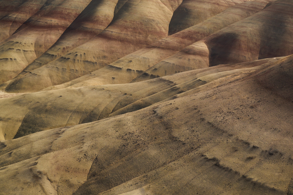 Un coin enchanteur où les couleurs dansent au gré de la lumière, un coin changeant au décor façonné par le temps. Clarno avec ses cathédrales de roche volcanique s’élevant au milieu du désert. Painted Hills et ses collines striées d’or, rouge, noir et orange. Sheep Rock où les strates d’une couche rocheuse issue  des cendres d’éruptions volcaniques reflètent une ombre turquoise.